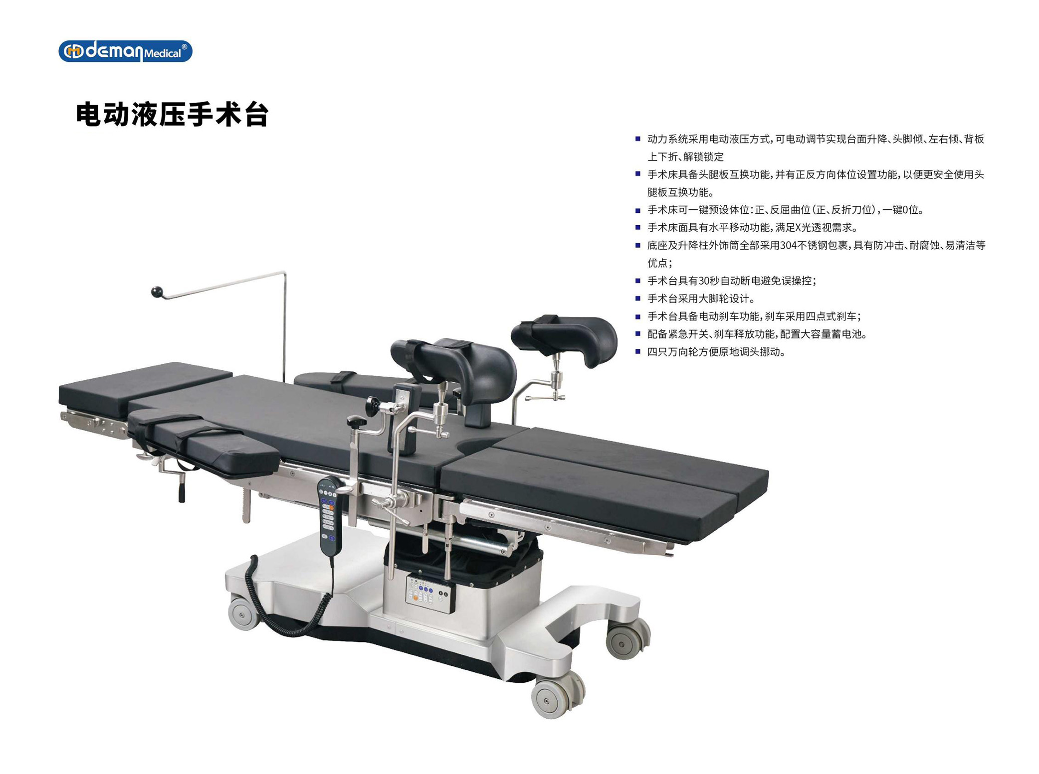 本篇文章为大家介绍电动液压综合手术床,今天为大家推荐的品牌是---德曼电动液压综合手术床一、核心技术:电动液压系统德曼电动液压综合手术床的核心优势,在于其采用的先进电动液压技术。与传统的电动传动技术相比更加...